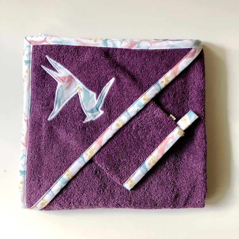 Cape de bain XL pour bébé jusqu'à ses 2 ans et demi. Gant assorti.