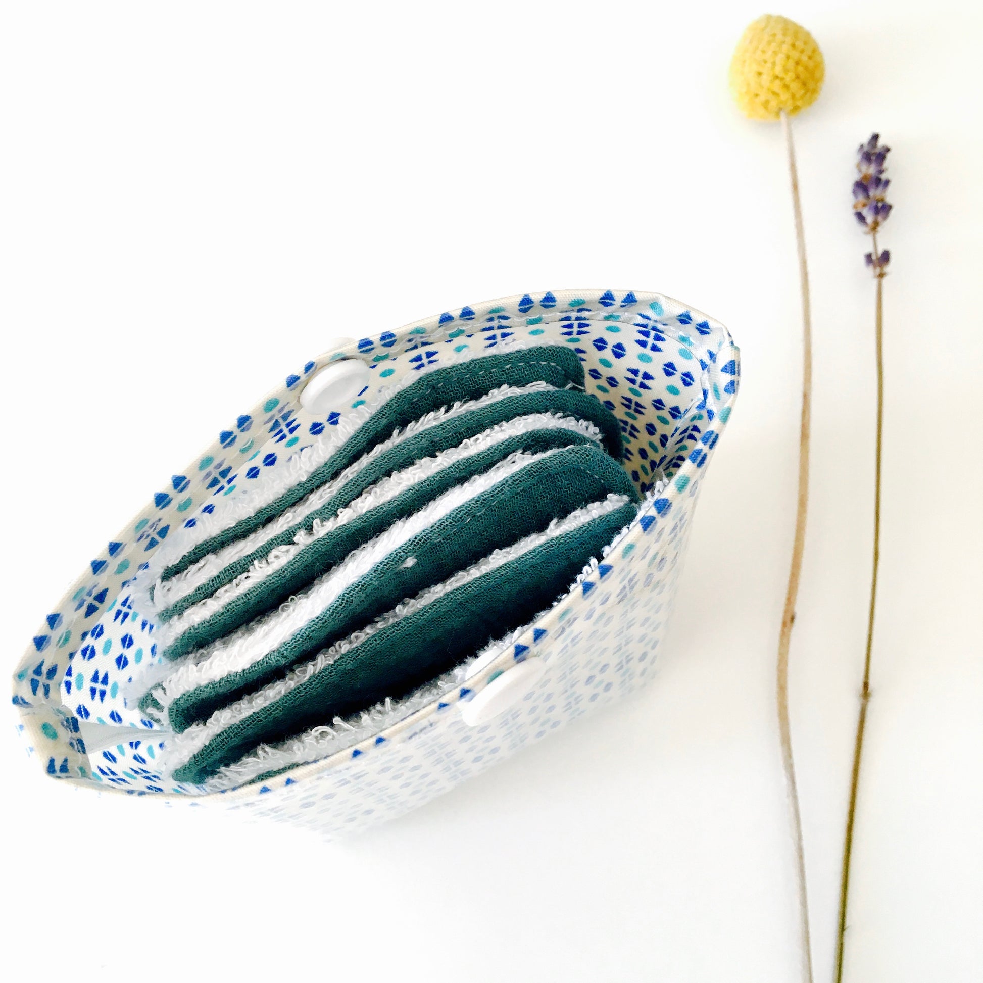 Finie l'accumulation des carrés de coton à la poubelle, limitons les déchets avec ce semainier de carrés démaquillants, facilement lavables et pratiques avec leur pochette imperméable pour les transporter partout.