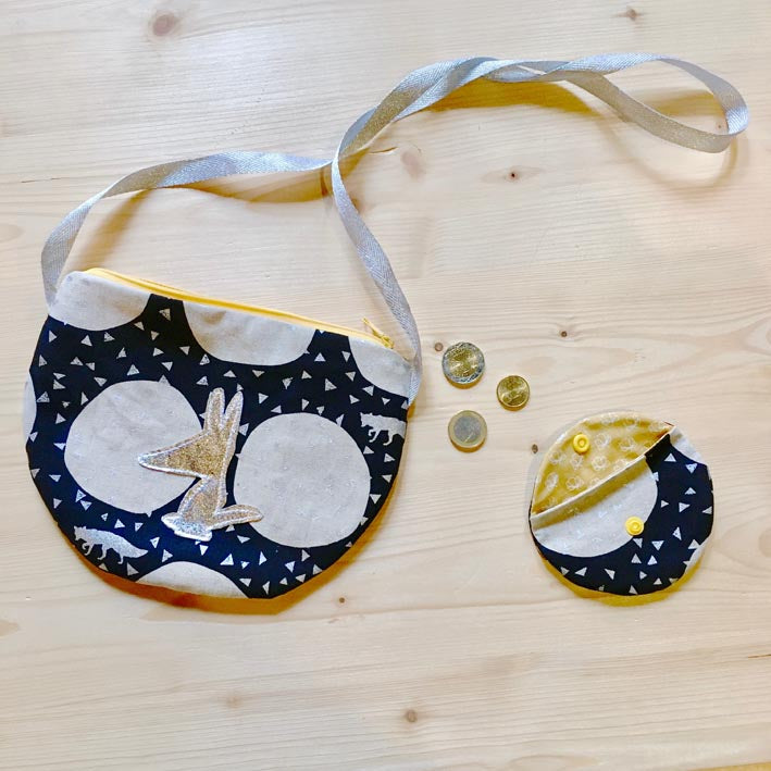 Sac à main enfant et son porte-monnaie n&b moutarde argenté