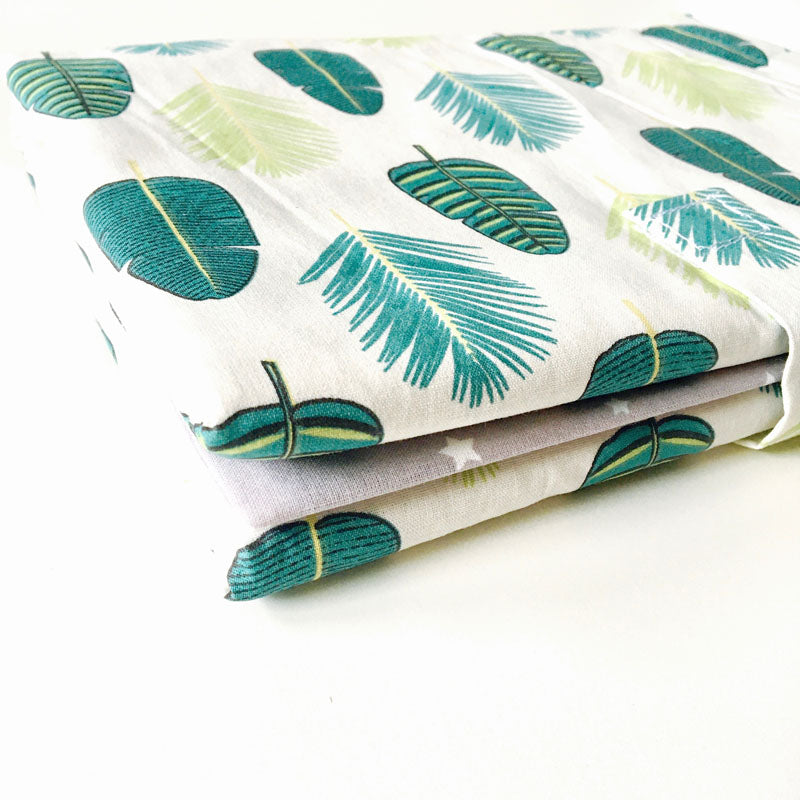Tapis en éponge couleur grise doublé d'un tissu en coton blanc à motifs feuilles avec fermeture à scratch.