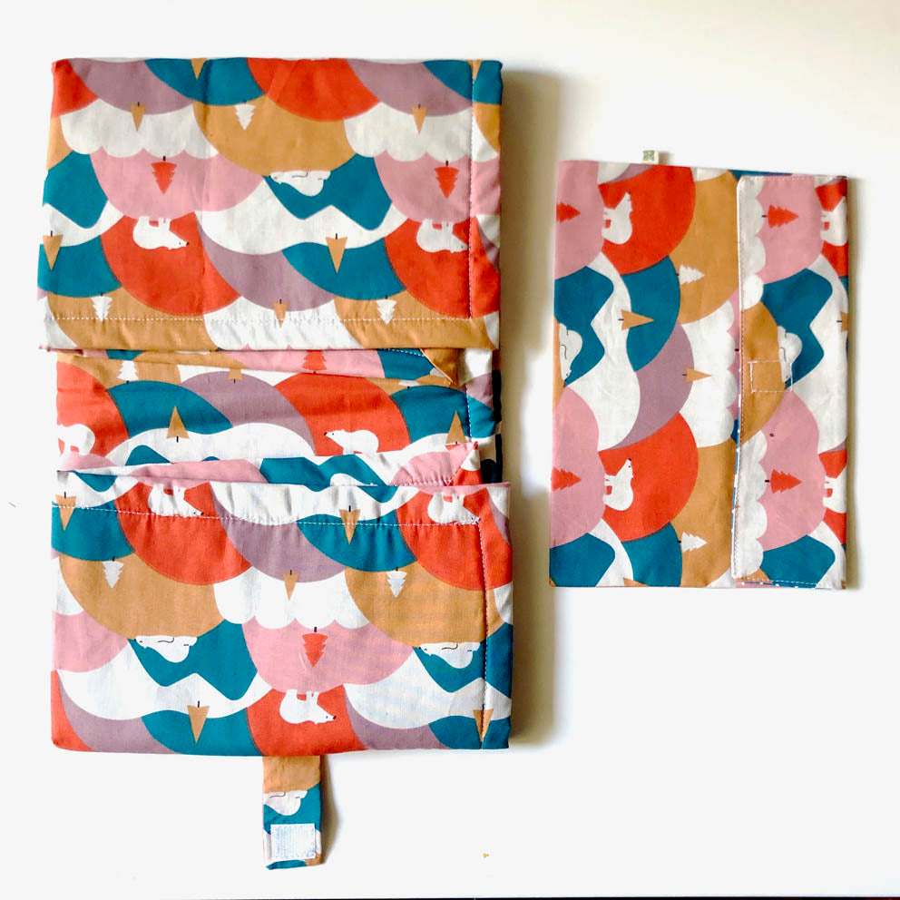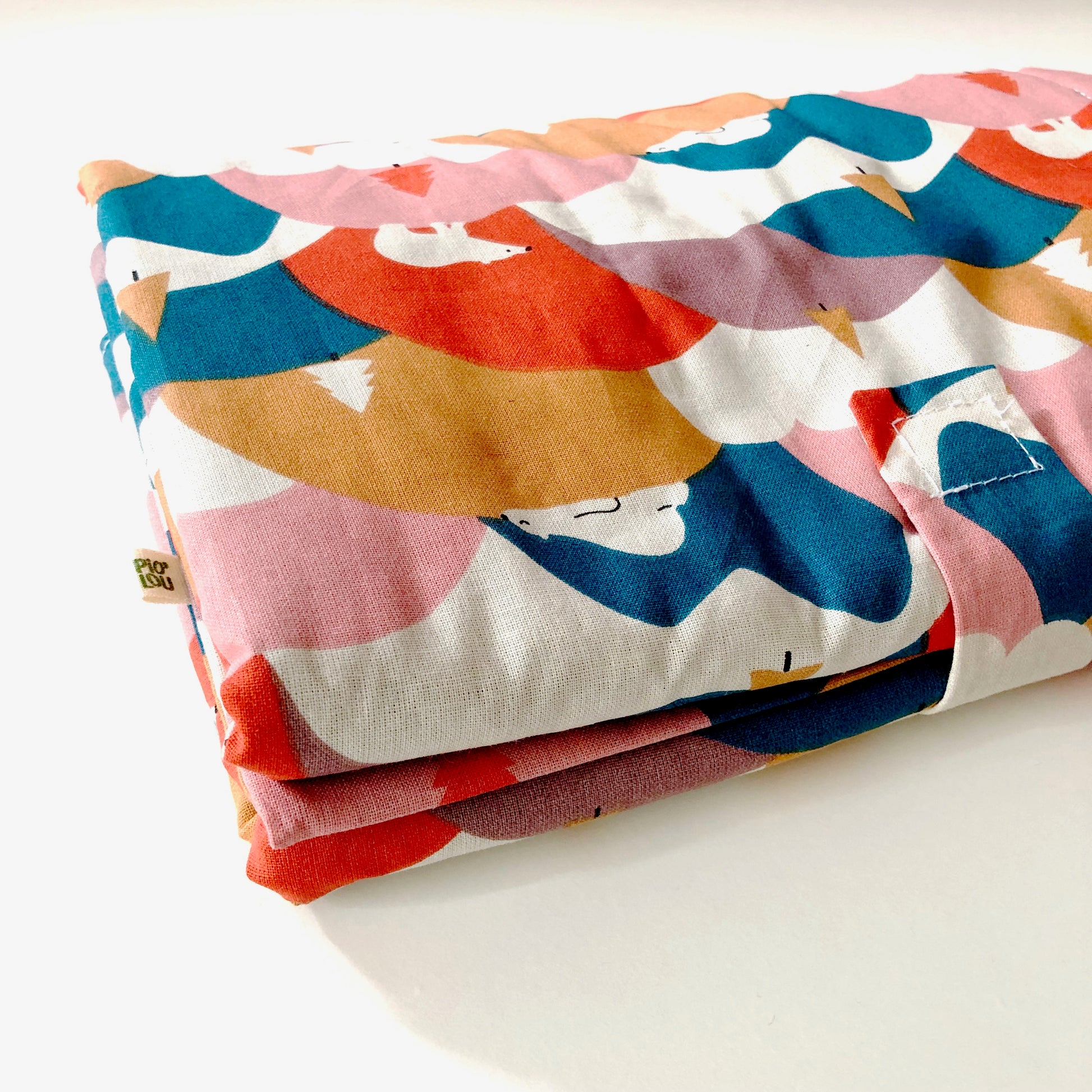 Le tapis à langer nomade compact et pratique avec sa pochette à couches à transporter partout.