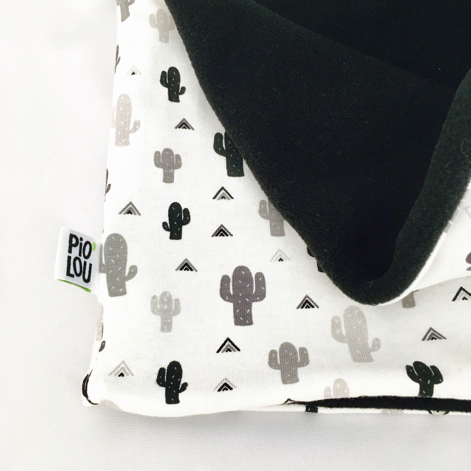 Tour de cou enfant réversible noir et blanc motifs cactus